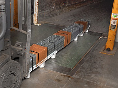 The product is bundled together and then pushed and dragged when loading onto and off of trucks. Often, the slotted runners can become caught on objects on the warehouse floor or on the gap between the warehouse and the truck when loading. This can result in the wood breaking and the bundle falling apart.